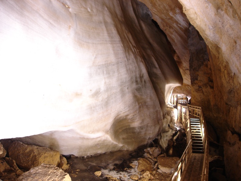 Jedną z najbardziej niezwykłych ciekawostek jest fakt, że w przeszłości w głównej komorze, którą jest Wielka Sala, organizowano jazdę na łyżwach. Przez wiele lat odbywały się tu treningi łyżwiarzy figurowych oraz hokeistów, a w 1893 roku odbył się wielki koncert na cześć Karola Ludwika. Dziś, ze względu na ochronę przyrody i przynależność do UNESCO, takie atrakcje są już niemożliwe, ale pokrywa lodowa wciąż robi wrażenie swoją gładkością i grubością, sięgającą w niektórych miejscach 26 metrów.